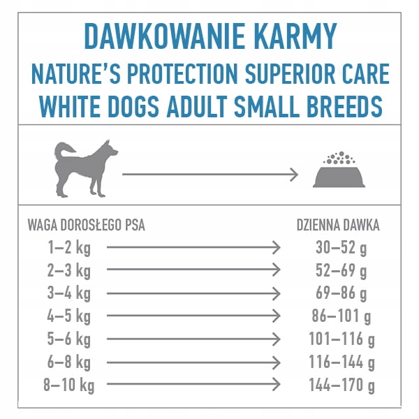 Aby uzyskać jak najlepsze wyniki, zalecamy karmić psa tylko Superior Care White Dogs, gdyż inna żywność może mieć wpływ na brązowienie sierści i w tym przypadku nie będzie widać żądanych wyników.